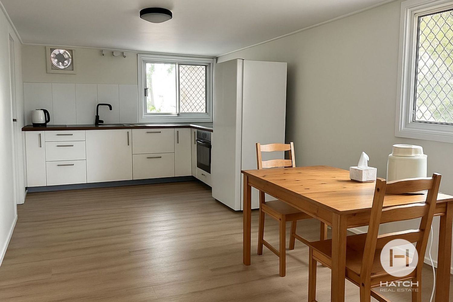 - Bright, modern kitchen and dining area