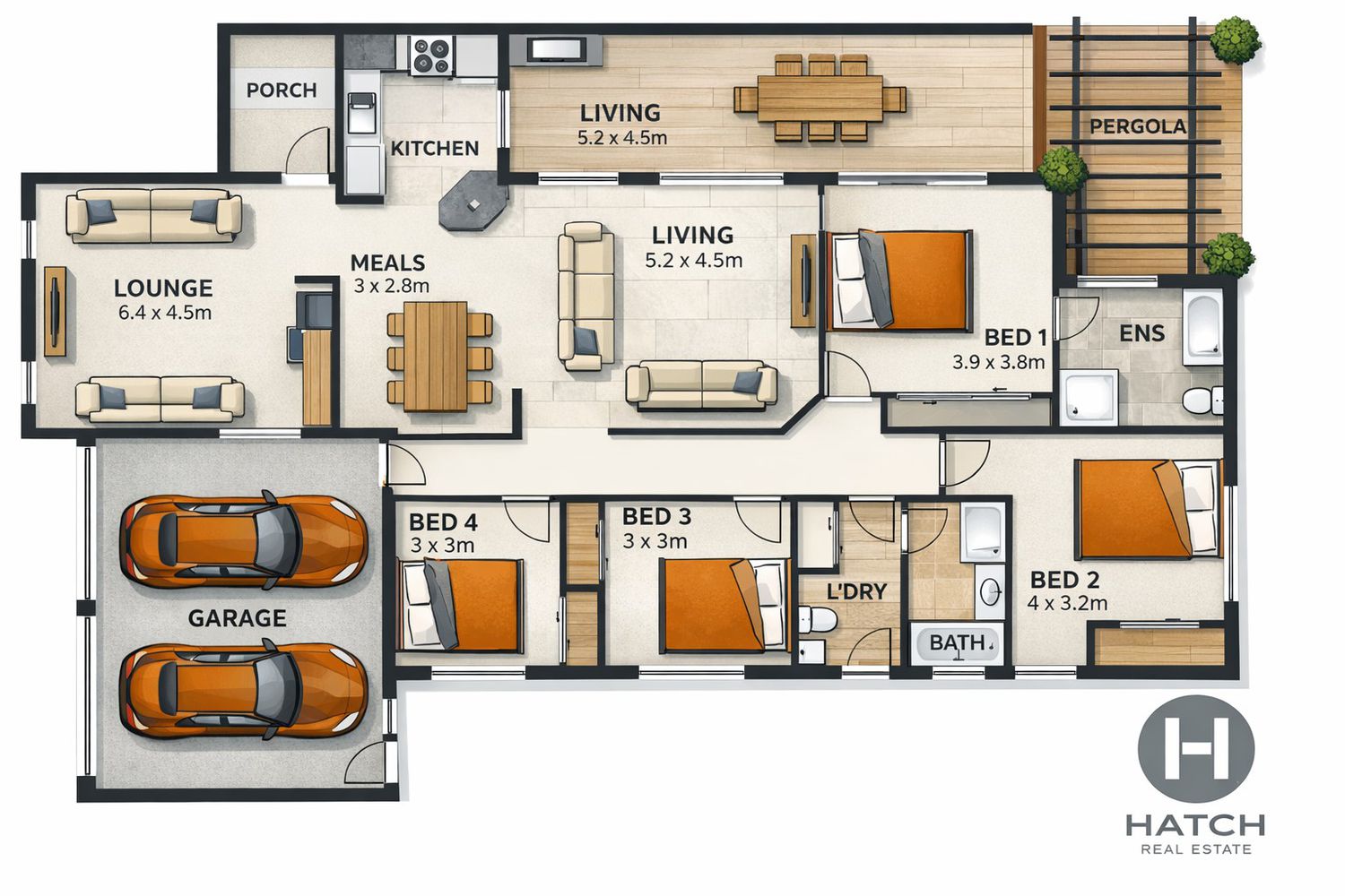 - Covered patio plus additional pergola – ideal for entertaining