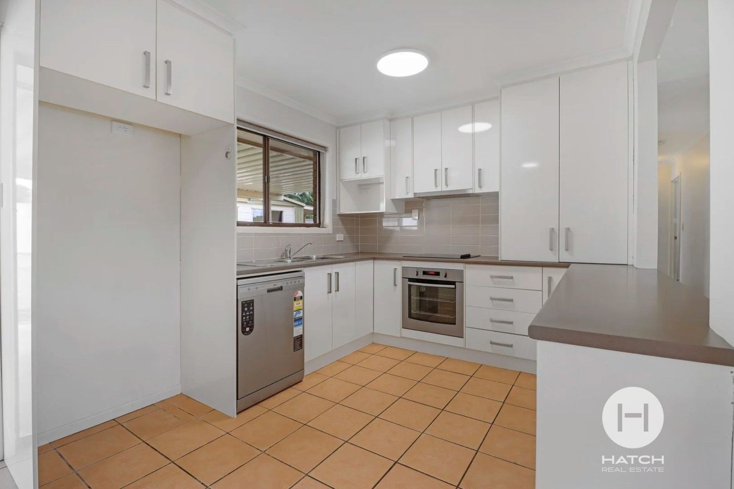 - Modern kitchen with ample cabinetry, electric cooking and dishwasher
